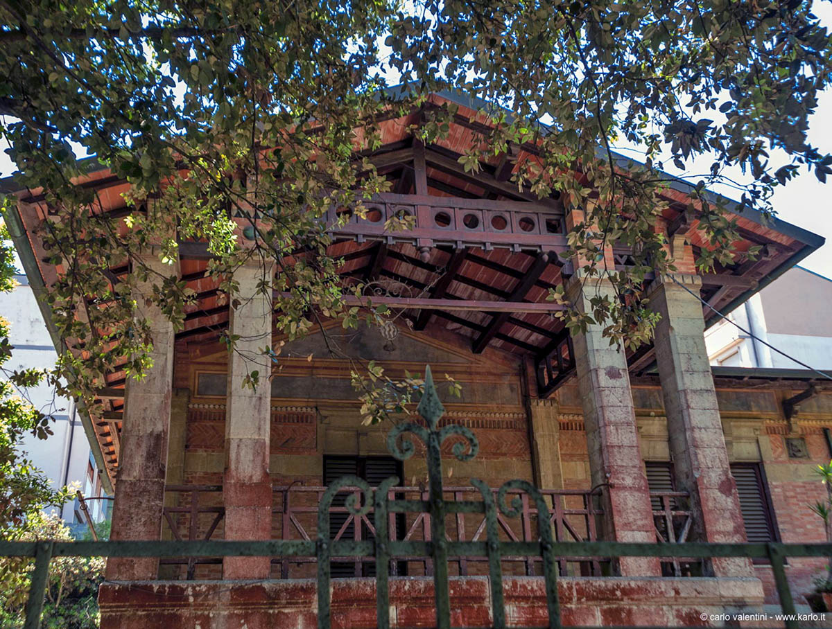 Il giardino doveva costituire in origine, nella sua conformazione caratterizzata da alberi ad alto fusto, pini e lecci, un’ideale prosecuzione della pineta di fronte.