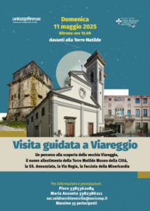 il nuovo allestimento della Torre Matilde Museo della Città, la Chiesa più antica di Viareggio la SS. Annunziata, la Via Regia con i suoi palazzi storici, la Facciata della Misericordia”. Visita Guidata gratuita, con guida abilitata, offerta, fino ad esaurimento dei posti disponibili (35) da Unicoop Firenze Sezione Soci Valdiserchio/Versilia, in collaborazione con la nostra Associazione.