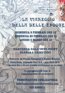 Lunedì 3 Marzo ore 15 – Partenza dall’InfoPoint – Piazza I. Campioni – Passeggiate Liberty/Bella E’poque: la storia di Viareggio, i personaggi che hanno reso famosa la nostra Città e molto altro, accompagnati da guida turistica autorizzata. Percorso da Piazza Campioni a Piazza Mazzini – Contributo richiesto Soci 8€ – Non soci 10€ – Bambini fino a 12 anni accompagnati da adulto gratuito -La passeggiata avrà luogo al raggiungimento di 10 partecipanti.