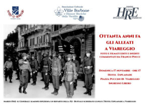 Presenteremo un incontro, dedicato agli 80 anni dell’arrivo degli alleati a Viareggio, lo faremo con il Presidente dell’Associazione Terra di Viareggio Avv. Franco Pocci, che con foto e filmati editi ed  inediti, commenterà, questo aspetto storico vissuto dalla nostra Città. Scopriremo così anche il ruolo che ebbero l’Hotel Esplanade e l’attuale Principe di Piemonte in questa vicenda.